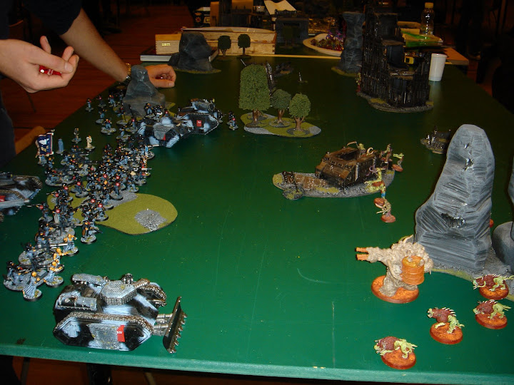 Samme tur, set fra den anden ende af bordet. Jeg har deepstriked en plague bearer unit på venstre flanke som er på vej frem efter at have rigged et objective.