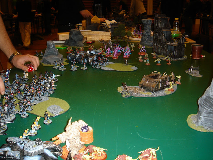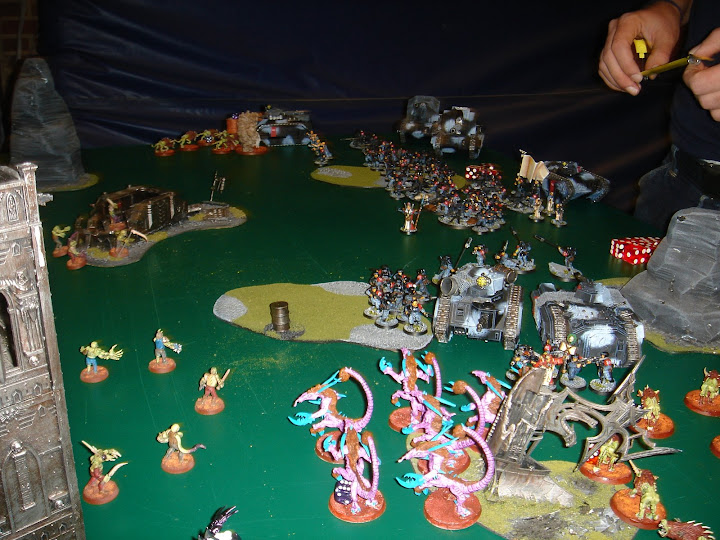 10 tacticals kommer ud for at lege, og pumper plague bearers fulde af bly, ligeledes kommer sternguarderne ud for at lege med, og efter endnu en bolter salve (som denne gang wounder på 2+), 1 HF og the avenger power fra libby, er der på mystisk vis stadig 4 overlevende plague bearers.