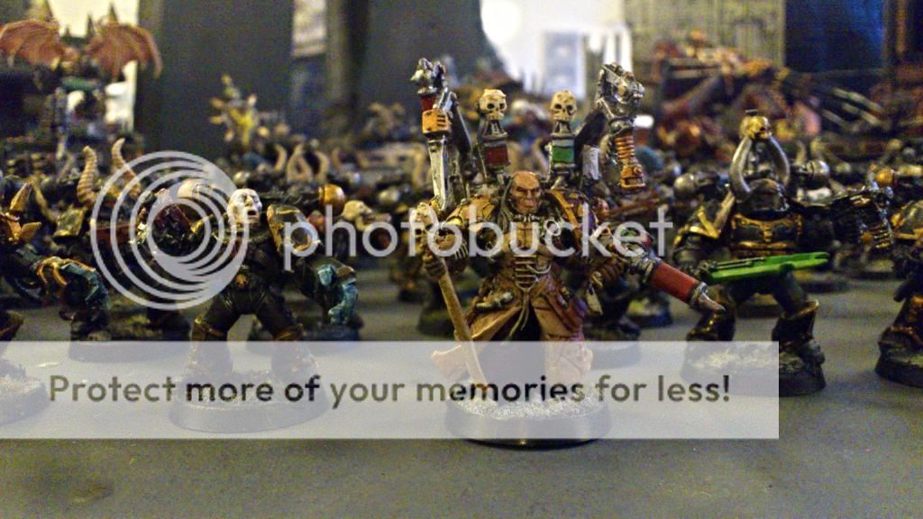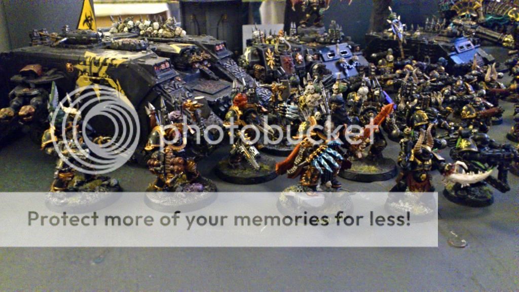 Jeg har faktisk prøvet malet en terminator og en alm CSM i Night Lords tema. Kunne være fedt at ændre alt Black Legion til det tema, da det har mange fede detaljer og ikke er sorte men midnats blå. Feks, malet skull signatur på hjelme, flagermushjelme som ekstra detalje på nogen, mere markant rød som tillægsfarve. Den midnatsblå kan heldigvis ligges med et tyndt lag direkte på den sorte og alle trims skal ikke ændres.  Det negative er alle de frihåndssymboler på min kørertøjer som skal males om, og på skulderne af mange mariner. Så stort arbejde. Alternativ tema er Iron warriors, der kan jeg beholde mange af de gule chaos stjerner, men blå lavet ekstra metal farve og chapter symboler. Synes dog de har en lidt kedelig grundfarve med det metaliske. Måske jeg skal prøve male en figur.