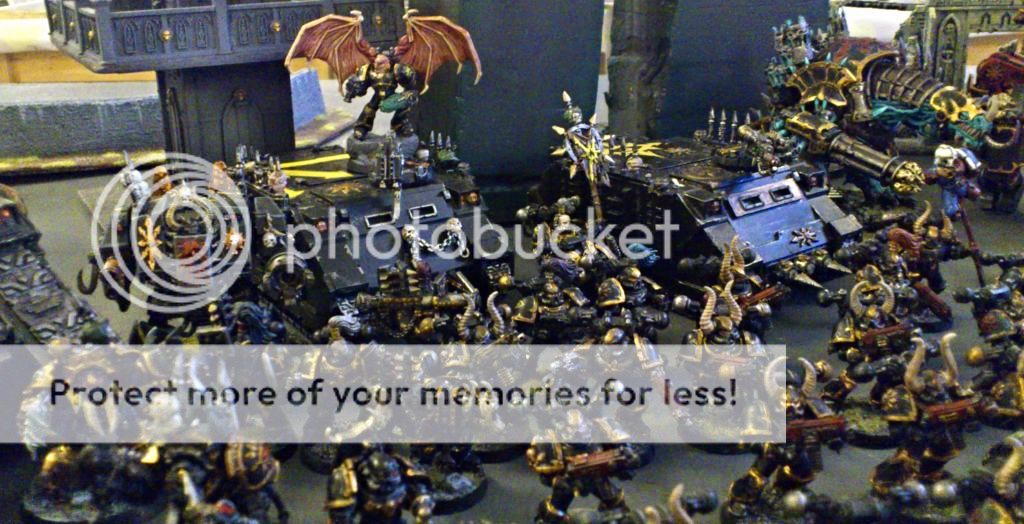 Mod en Black templar lige. Gik fint, vandt 13/7 tror jeg det var. Det så lidt håbløst ud i starten, men terminators og thousand sons viste hvor solide de er. Hans Veneable dread med tankhunter skød min drage ned med min lascanon.
