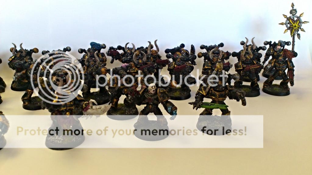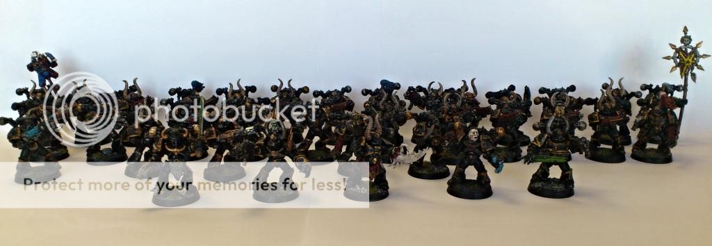 Fik taget lidt billeder af Black Legion hæren efter et enkelt spil i lørdags. Der mangler dog lidt dele enheder med thousand sons, som kultister og spawns.
